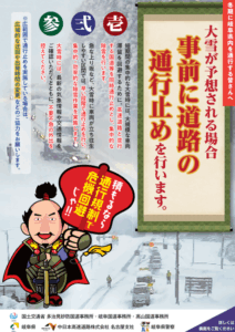 岐阜県内において大雪が予想される場合、事前に道路の予防的通行止めが実施されます。