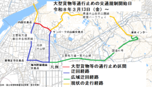 犬山警察署交通課より、以下の通り「サンパーク犬山前交差点~内田交差点 大型貨物自動車等の通行止め」を実施するのでお知らせします。