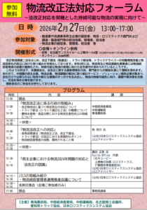 日本ロジスティクス協会(JILS)では、物流改正法対応フォーラムを開催いたしますので、ぜひご参加ください。
