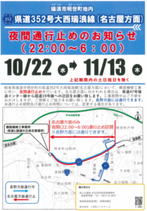 ■ 県道352号大西瑞浪線(名古屋方面)夜間通行止めのお知らせPDF