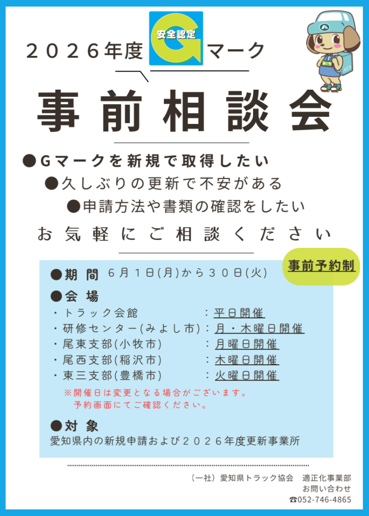 (一社)愛知県トラック協会 適正化事業部 適正化事業課 TEL:052-746-4865