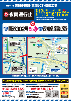 ■ 国道247号西知多道路(東海JCT)橋梁工事に伴う夜間通行止のお知らせ(12月15日(月)、16日(火)、17日(水)) ![]()