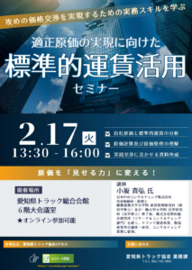 「標準的な運賃」に基づいて荷主との運賃交渉を行い、ドライバーの働き方改革を実現し、持続可能な輸送を維持できるよう「標準的な運賃」活用セミナーを開催いたします。